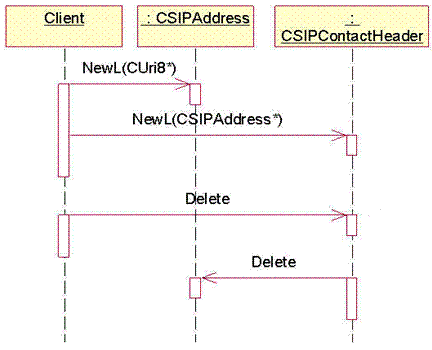 The following illustration shows the steps for creating a CSIPContactHeader instance.