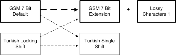 For information about the GSM 7-bit default alphabet and extension table, see 3GPP TS 23.038 V8.1.0. The table below lists the extra lossy conversions supported by the standard converter.