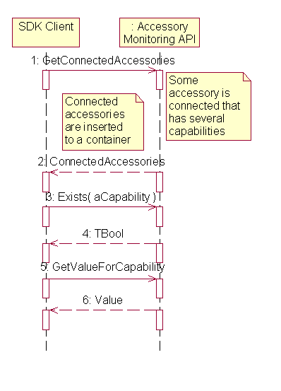 Clients retrieve the capabilities information from an instance of CAccMonitorInfo All the accessories capabilities are owned by this instance. Use AccCapabilityAtIndex() to retrieve one capability as shown in the following example: