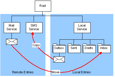 Message Framework provides a tree view of entries in a Message Store. The tree is divided into three levels: root entry, service entry, and folder and message entry, which are provided TMsvEntry. The child entries of the root entry must be service entries. A message client application can begin from the root entry, and by successively finding the children of an entry, can traverse the whole entry tree. The parent of each entry is recorded in the index entry's details.