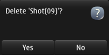 A confirmation query requests the user to confirm an operation, or asks a Yes/No type of question. It can be used e.g. to make sure that the user does not accidentally delete important information or start an operation which cannot be cancelled. A touch down and release on the query has no effect. Confirmation query cannot be dismissed by tapping outside.