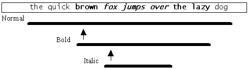 The Symbian platform uses the principle of format layering in which new formatting is added as a layer onto the previous layer of formatting. The following diagram shows a less efficient technique for applying format layering to text. The inefficiency arises because each format layer stores not only the new attribute which it introduces, but also every attribute which it inherits from the preceding format layer.