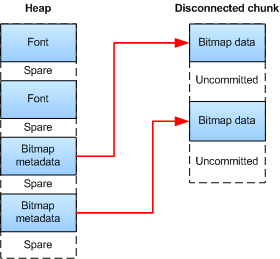 When the reference count of clients using a font or bitmap that is resident in RAM falls to zero, the server can delete it and free the memory. XIP ROM based bitmaps are accessed in place, not copied into RAM.