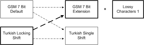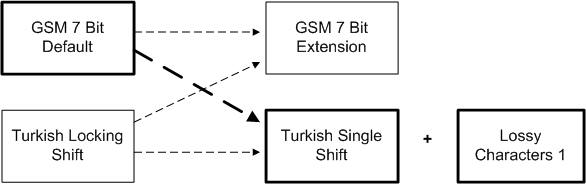 the Turkish locking shift alphabet, default GSM extension alphabet and the