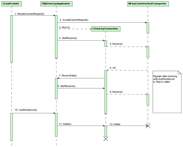 // End of CMyOwnLlcpApplication::RemoteConnectRequest()Note: When a connect request is accepted, the MLlcpConnOrientedTransporter object is automatically moved
