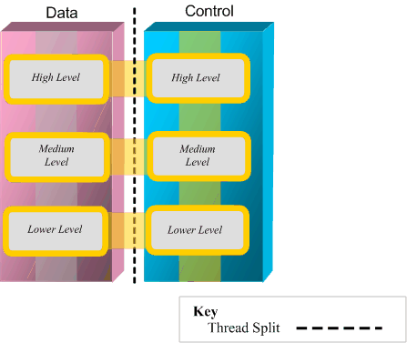 By separating the code for the data flow and the control functions, it is possible to have each in a separate thread or even each in a separate process. This allows appropriate resources to be allocated and priority to be assigned to support Quality of Service, prioritisation of time-critical data flows and optimised plug-ins for specific protocols.