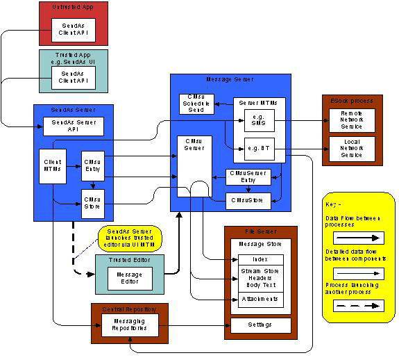 After the editor is launched, the SendAs Server is no longer responsible for that message, the editor takes the responsibility. The message editors are applications that are trusted with the required capabilities to modify and send messages of that type. They communicate directly with the Message Server using the Message Server APIs.
