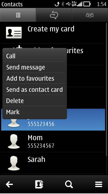 The Toolbar emphasises key functions within an application view. There are a maximum of two important functions shown in the Toolbar. Toolbar buttons are located between the softkeys |