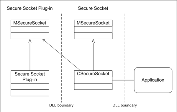 The following figure shows the relationship between applications, secure socket classes, and secure socket plug-ins.