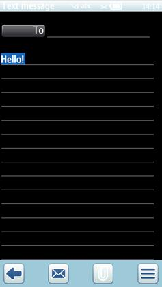 In editors and viewers, text can be selected by painting it. The Cut-Copy-Paste menu is available after painting has taken place. For more about the Cut-Copy-Paste menu, see Cut-Copy-Paste. A longer stretch of text can be selected by using the Hash (#) key and keeping it pressed while using the Arrow keys. The selected text is highlighted, and the Cut and Copy functions are available on the softkeys when some text has been selected. It is also possible with hardware interaction to start selections by going to the Options menu and selecting the Copy mode (text-selecting options in touch devices are described in the Cut-Copy-Paste topic).