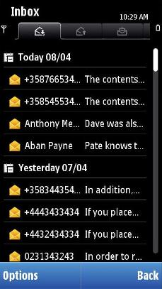 To enable more information in a single row, the core data row can be divided into two core data columns. The more important information should be shown in the first column due to more space, for example e-mail sender information in the first column, and subject in the second column. In landscape there can be also third column in use.