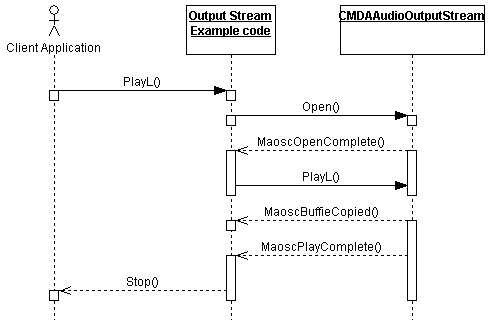 Typically, using an audio output stream involves the following steps as shown in the sequence diagram below: