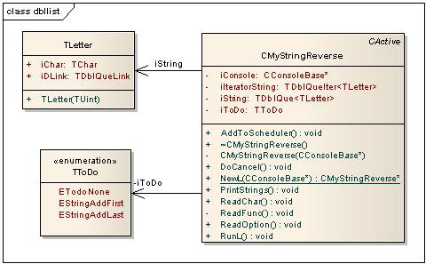 active object class and handles key press events in the CMyStringReverse::RunL() function. The CMyStringReverse::ReadFunc() function