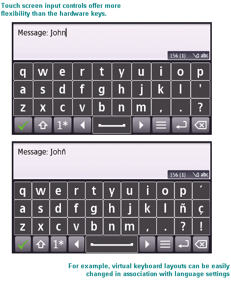 • Flexibility - Virtual keyboard provides more flexibility than fixed hardware keys. The dynamically changing interface allows for flexible configurations depending on the functionality requirements, languages, and so on. Also, indirect strokes and gestures provide flexibility reducing the need for physical buttons.