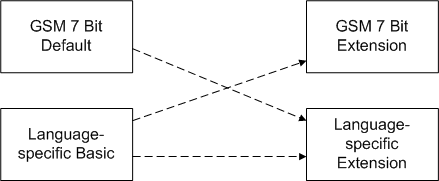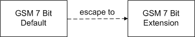 For more information about the GSM 7-bit default table, extension table and escape mechanism, see 3GPP TS 23.038 V8.1.0.