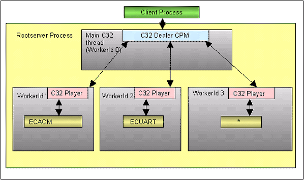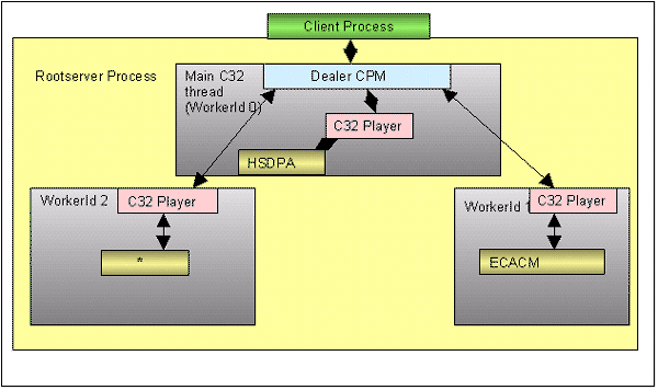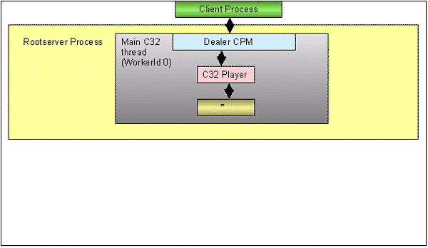 C32 Multithreading uses the same Dealer/Player terminology/concepts as Esock Multithreading. The Dealer is the main C32 Comms Provider Module (CPM) which runs the C32 server; a Player is a C32 CPM that only runs one or more CSYs and takes the client requests from the Dealer module.