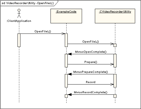The sequence diagram below explains the different functionalities of the video recorder utility: