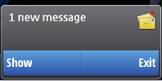 The user can respond to the soft notification by using the softkeys. The left softkey is used for activating a function, for example opening a message that has arrived. The right softkey is used to discard the notification without taking any further action. In touch layout, the softkeys are placed inside the pop-up component