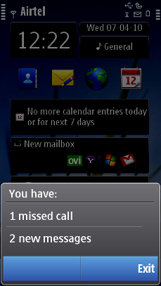 Soft notifications are displayed only in the home screen. If an event that causes a soft notification (for example, a missed call) occurs when an application is active, it may cause other kinds of UI events to notify the user, but if the user does not react to these, the soft notification appears only after the phone is put in the home screen if the event still requires it.