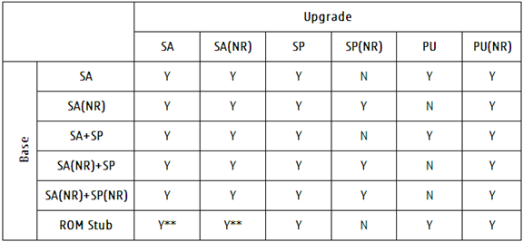 * The base SA and associated upgrades are removed ** The base SA is removed prior to the installation of the SA upgrade.