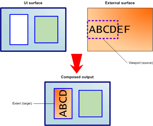 Figure: Composition of the UI surface and an external surface, showing the viewport and extent