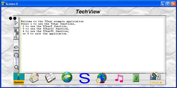 This example application demonstrates how to use TChar, TCharF, TCharLC and TCharUC classes.