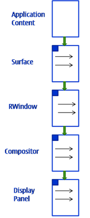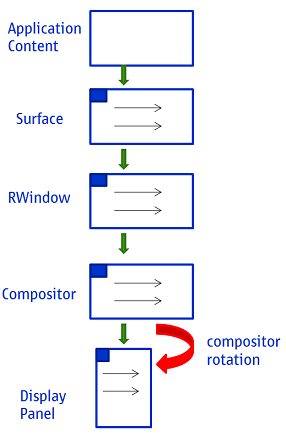 Rendering in native orientation. Application content is rendered to the display panel in several stages. The following diagram summarizes the rendering pipeline. For simplicity, the compositor is shown as a single stage. The compositor back-end in the hardware adaptation layer and the compositor hardware are not shown.