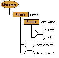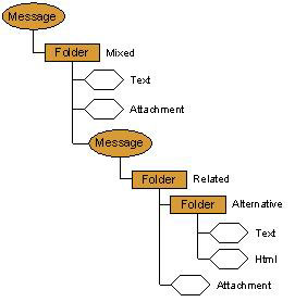 The following are the types of email that are supported. The diagrams represent the structure of the message entries in the Message Server.