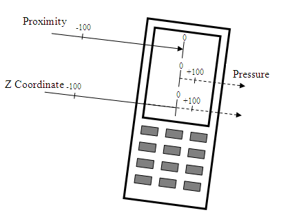 Figure: Relationships between the pointer proximity, pressure and z coordinate