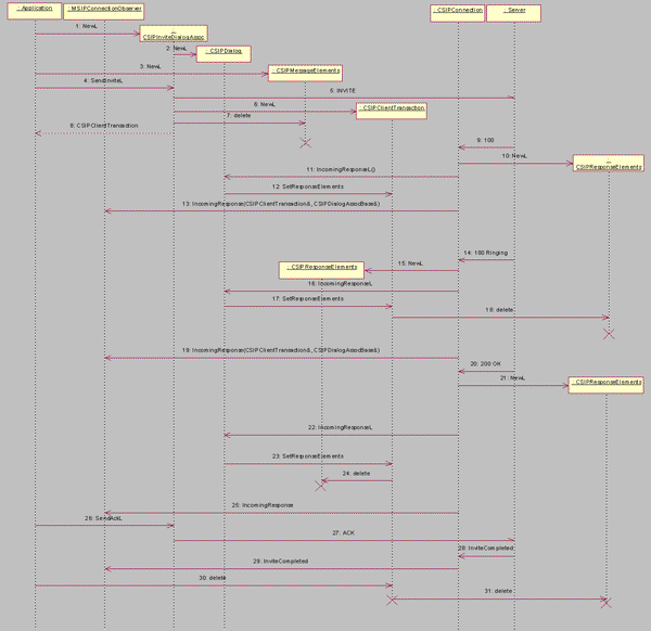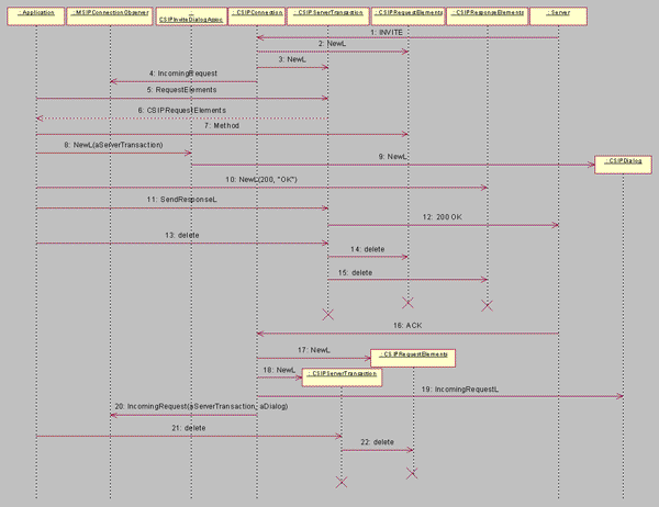 CSIPInviteDialogAssoc then forms an INVITE request and communicates it to the server side of the SIP stack. It then creates a CSIPClientTransaction object, and returns it to the application.