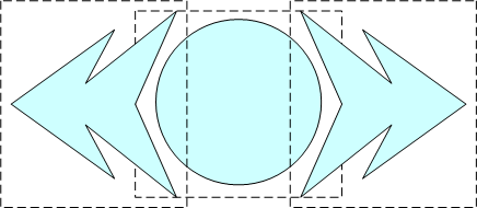 The diagram below represents three controls, each of which is rectangular but which appears on the screen as a non-rectangular bitmap. Only a hit on a bitmap area should register. This could be achieved by defining a single hit-test region in the shape (and position) of the three blue areas and associating it with each of the controls. The class that implements the hit-test region must implement the MCoeControlHitTest interface.