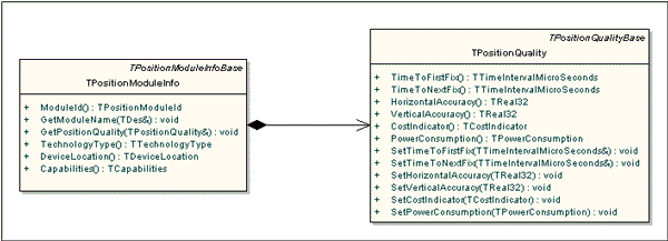 The classes TPositionModuleInfo and TPositionQuality hold information about the capabilities of Positioning Modules and the quality of position information that they can provide. Figure 1 illustrates these classes.