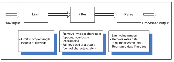It is possible for the user to unintentionally enter incorrect data that can interfere with the normal operation of the application. All input should be checked and validated before processing. A one-time check may not be enough because the content of data can change during processing, so it is therefore advisable to quickly check the data every time it is used.