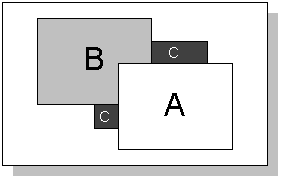 A window is moved to the front (i.e., to the foreground) by giving it an ordinal position of 0. The diagram below shows windows A, B and C, but window B has now been given an ordinal position of 0. A’s position has been incremented to 1, and C’s remains as 2.