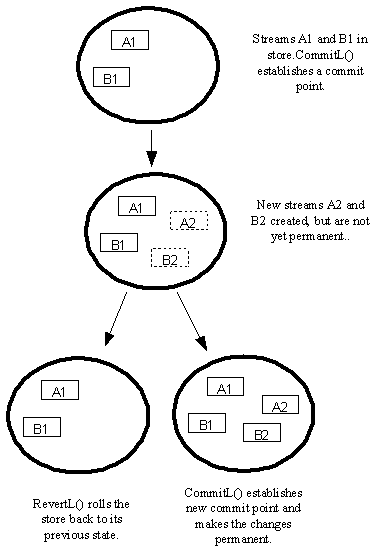 Typically, changes to a store are not made permanent until they are committed, establishing what is called a commit point. Until such changes are committed, they can be rolled back or reverted, effectively causing the store to revert back to its state before the changes were made. If a process termination or a media failure occurs, the store reverts automatically to its state at the last successful commit point.