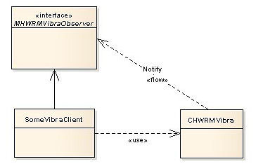 A separate callback interface [[[ERROR: [NOKX000E] Unable to find definition for key reference 'CHWRMVibra']]]MHWRMVibraObserver for status reporting is also used. The client creates an instance of [[[ERROR: [NOKX000E] Unable to find definition for key reference 'CHWRMVibra']]]CHWRMVibra using [[[ERROR: [NOKX000E] Unable to find definition for key reference 'CHWRMVibra']]]NewL(). If the client requires the status information, it must provide a callback pointer of the [[[ERROR: [NOKX000E] Unable to find definition for key reference 'CHWRMVibra']]]MHWRMVibraObserver implementing class for the [[[ERROR: [NOKX000E] Unable to find definition for key reference 'CHWRMVibra']]]NewL() method.