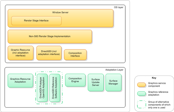 The Graphics Resource component provides an abstraction layer for the memory management of pixel and non-pixel data (such as OpenVG command lists). Like DirectGDI, it has a generic part, which provides a client API and an adaptation part, which device creators can adapt to take advantage of graphics hardware when it is available.
