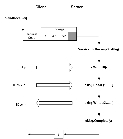 code and four 32-bit parameters from client to server and returning a 32-bit