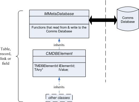 All elements that you can read and write have the class [[[ERROR: [NOKX000E] Unable to find definition for key reference 'CommsDat']]]MMetaDatabase as a base class. This base class contains the functions that get and store that element.