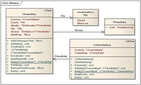 of this class generates timer events by using the CTimer::After() function. The data member of this class, iQueue is a delta list. The offset value of each node in this list is the