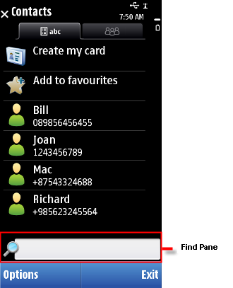 Figure: Find pane within a selection list of names in Phonebook