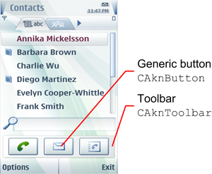 for touch support. The generic button component (CAknButton, defined in aknbutton.h) is used, for example,